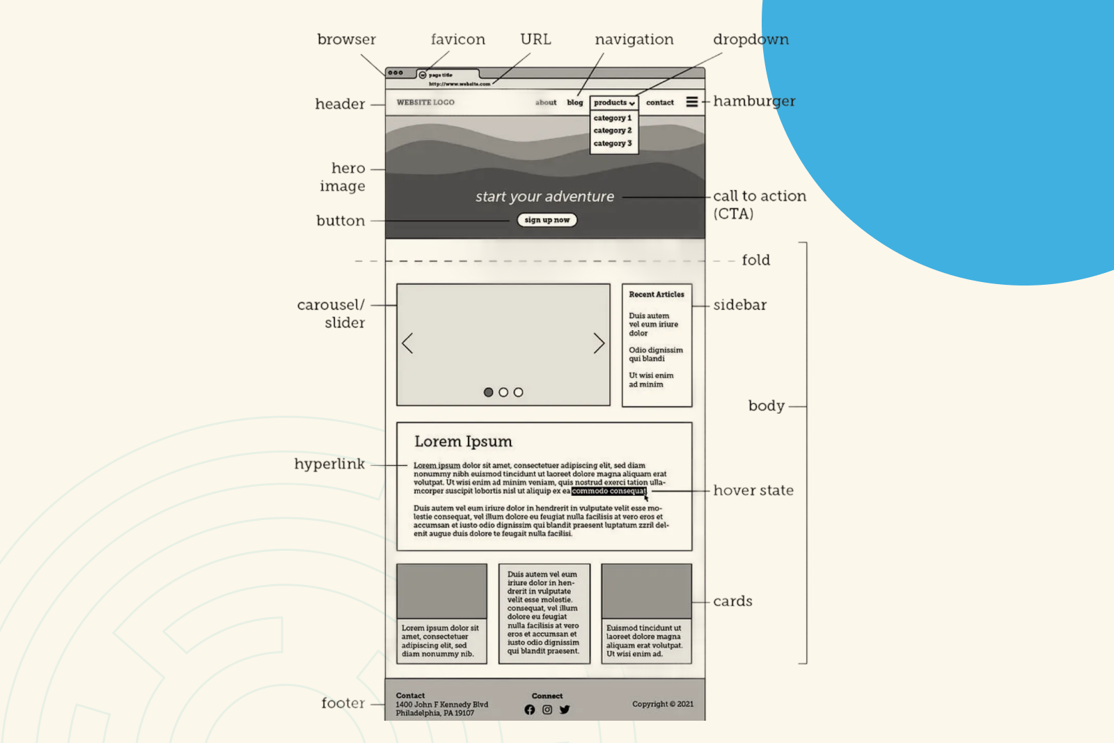 Bố cục website (Layout) là sơ đồ sắp xếp vị trí và kích thước của các thành phần chức năng (UI Element), các yếu tố thiết kế (graphic element), các nội dung văn bản và thông tin trên một trang web. Hãy hình dung layout như một bản thiết kế tổng thể, một canvas giúp cố định các mảnh ghép như logo, menu, button, link, hình ảnh và nội dung vào những vị trí nhất định.