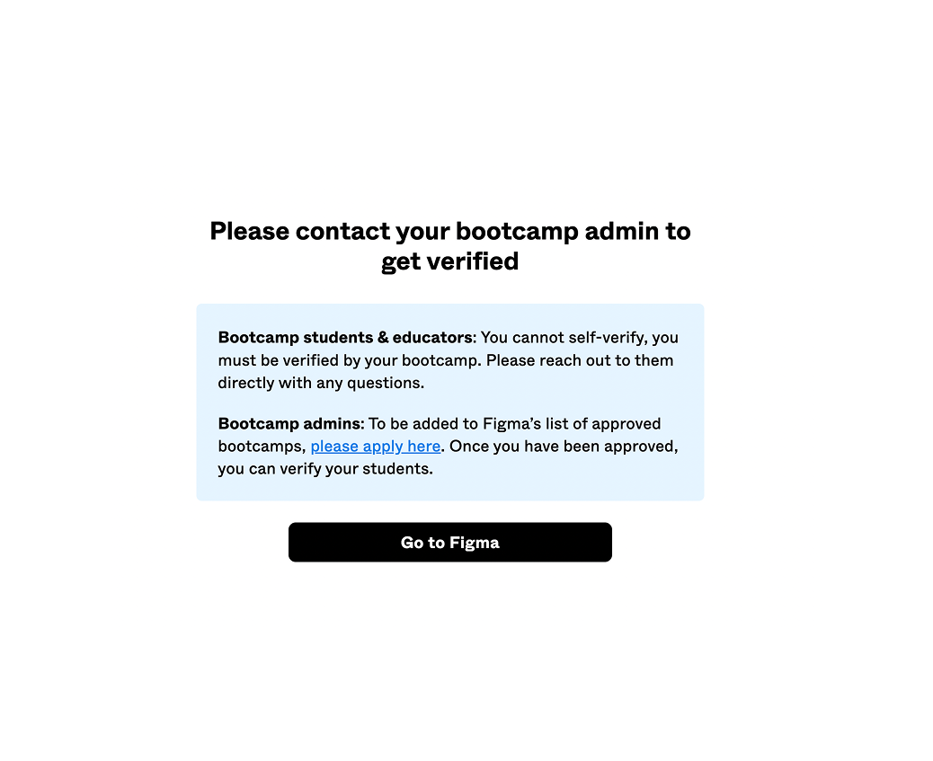Nhiều bạn nhầm lẫn là có thể đăng ký “bootcamp”, nhưng điều kiện để được Figma xem bạn là 1 trung tâm đào tạo sẽ rất khó khăn, nên việc tự đăng ký kiểu này cũng no-hope.