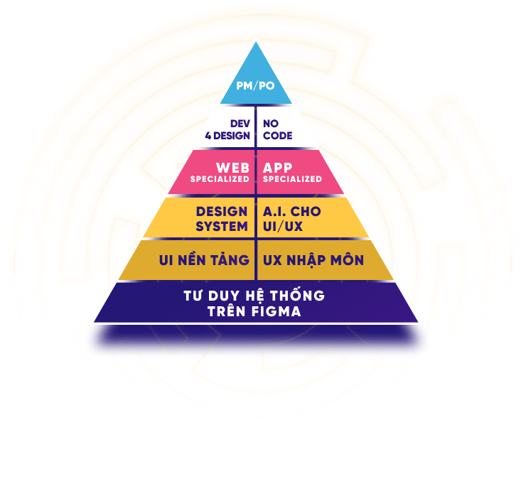 Trang bị kiến thức đầy đủ từ tư duy hệ thống bằng công cụ, xây dựng góc nhìn UX, nắm chắc quy luật về giao diện UI và cách xây dựng và phát triển Product.