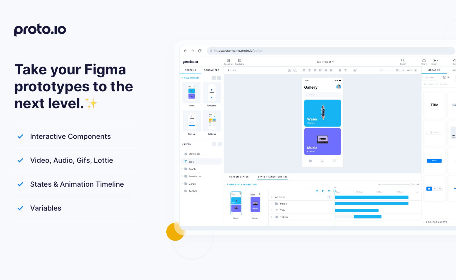 Proto.io là nền tảng prototyping chuyên cho mobile, cung cấp thư viện component iOS và Android phong phú cùng khả năng tạo animation, transition đẹp mắt. Bạn có thể preview prototype trực tiếp trên thiết bị thật qua ứng dụng di động, giúp kiểm tra trải nghiệm người dùng một cách chân thực. Proto.io phù hợp cho các dự án cần tập trung vào animation và transition mượt mà mà không muốn đầu tư quá nhiều vào code.