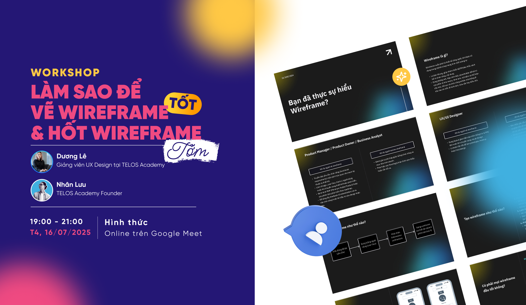 Vào ngày 16/07 vừa qua, TELOS Academy đã tổ chức thành công buổi workshop “Làm sao để vẽ wireframe tốt và hốt wireframe tởm” trong chuỗi Nghề Trong Người với sự tham gia của đông đảo các bạn quan tâm đến UI/UX và Product Design.