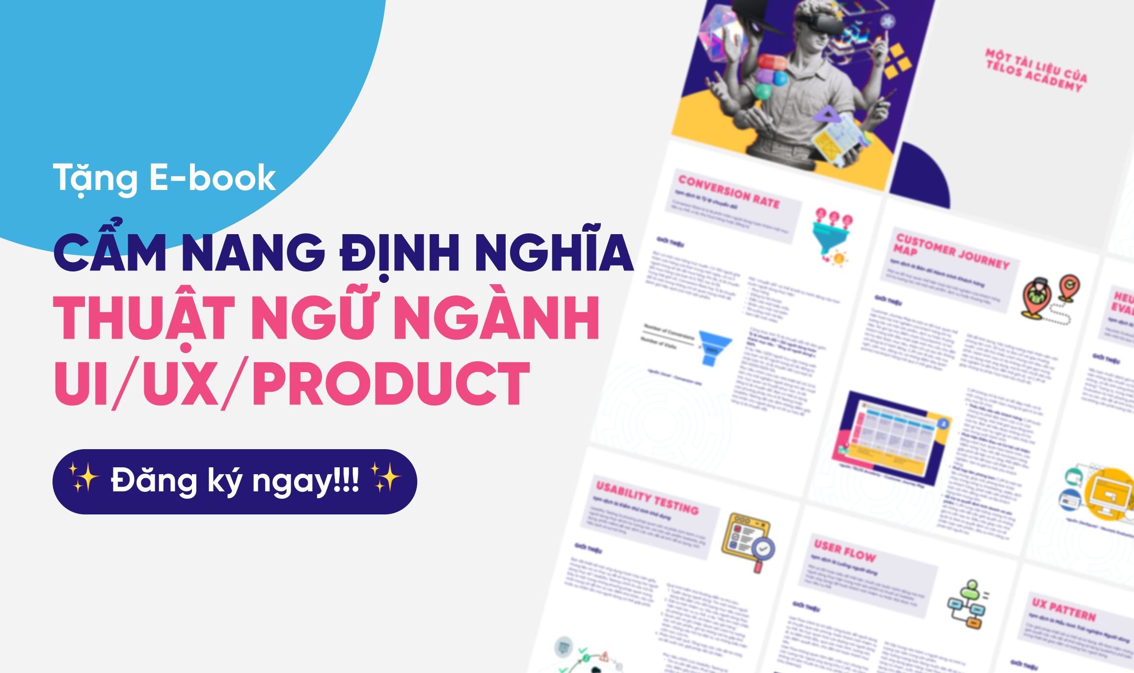 Chính vì vậy, đội ngũ TELOS Academy đã biên soạn cuốn “Cẩm nang định nghĩa Thuật ngữ ngành UI/UX/Product” dành riêng cho người mới bắt đầu. Cuốn ebook này sẽ giúp bạn “gỡ rối” từng khái niệm một cách ngắn gọn, dễ hiểu.