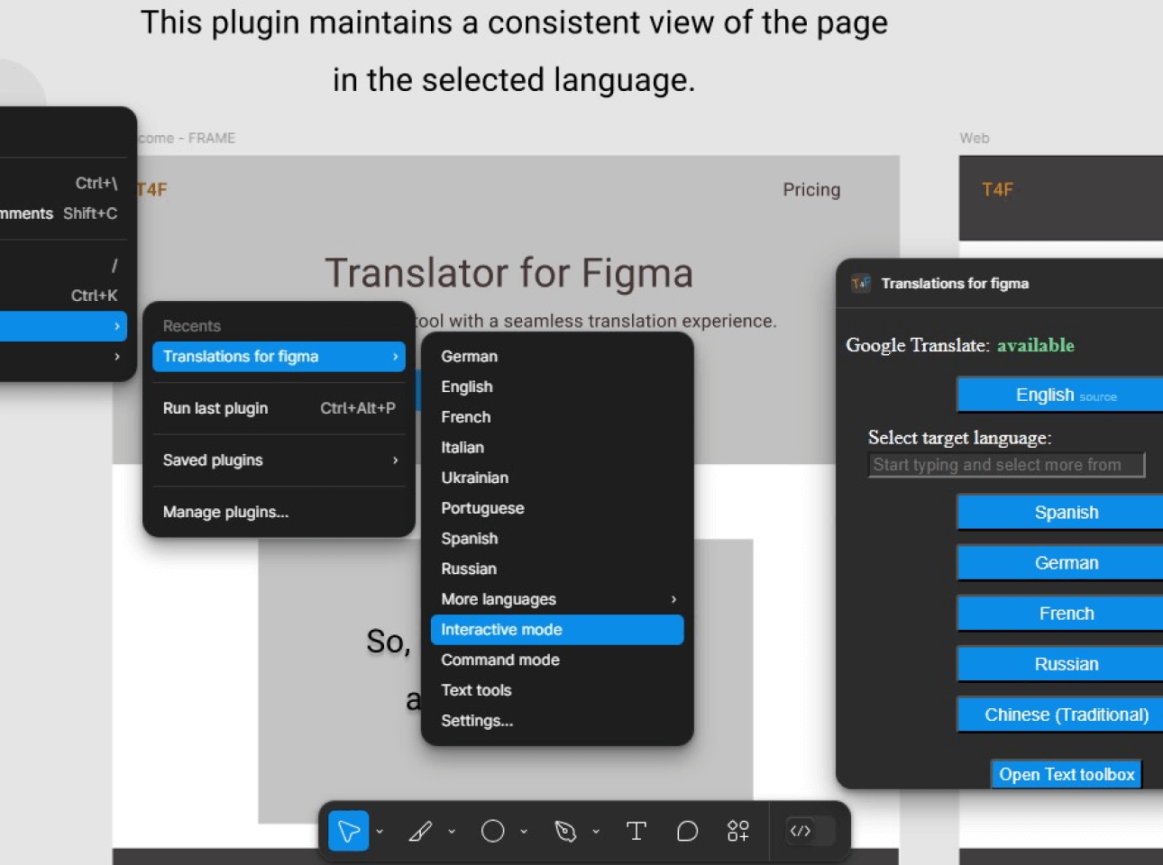 Plugin này cho phép bạn dịch toàn bộ giao diện chỉ trong vài giây, mà không cần rời khỏi Figma.